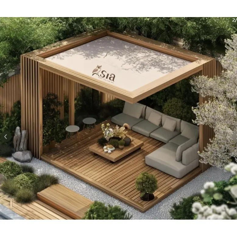 Поддржува целосно-димензионално персонализирано прилагодување.  Димензиите (должина, ширина и висина) може да се прилагодат според просторот на локацијата.  Материјалите за покривот вклучуваат поликарбонатни плочи, двојно застаклено стакло и решетки од алуминиумска легура, балансирање на сончаници и потреби за пренос на светлина.  Може да интегрира паметни додатоци како што се LED амбиентално осветлување, невидливи вентилатори и системи за ладење со магла.  Светлата може да се вклучат навечер за да се создаде топла атмосфера, а вентилаторите може да се вклучат во летните ноќи за да ја отстранат застоеноста, подобрувајќи го слободното искуство. Може да се спои и со отстранливи завеси и ветроупорни екрани за флексибилно прилагодување на затворениот простор, задоволувајќи ги различните потреби за користење, како што се заштита од сонце и дожд, гледање и разговор и работа во канцеларија на отворено.
